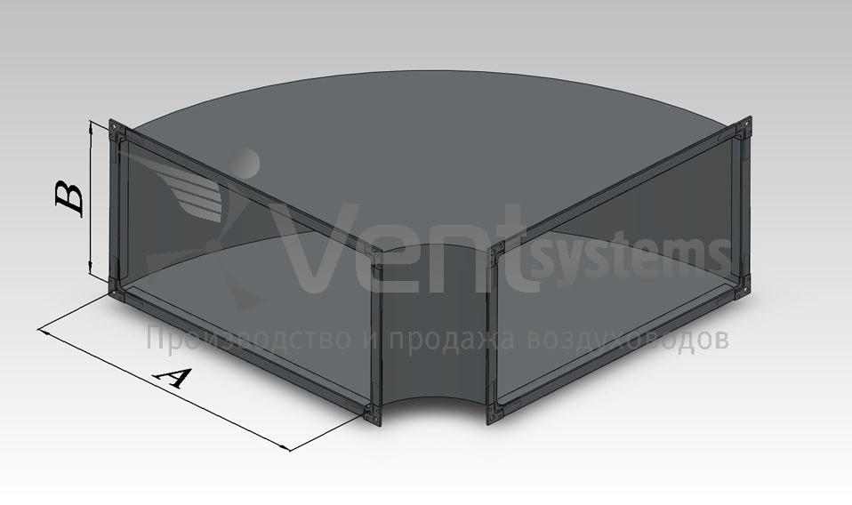 Прямоугольный стальной оцинкованный отвод с фланцами и шейкой радиусом