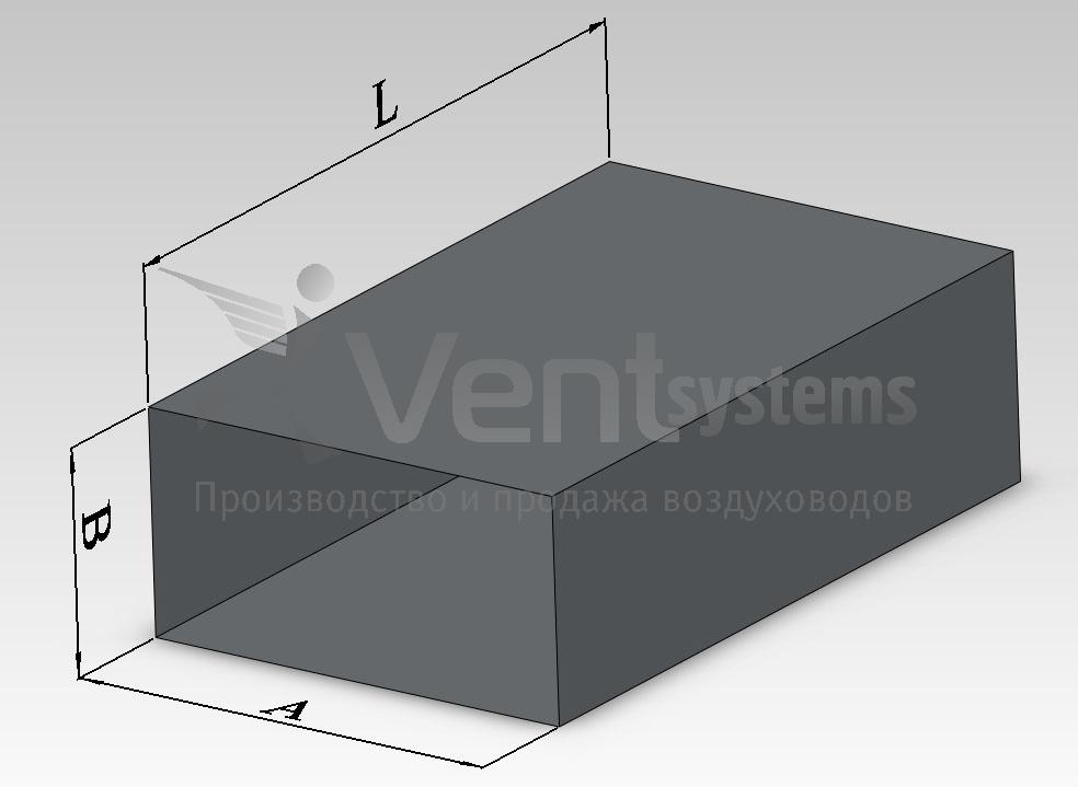 Прямоугольный стальной оцинкованный воздуховод без фланцев длиной до 2 метров